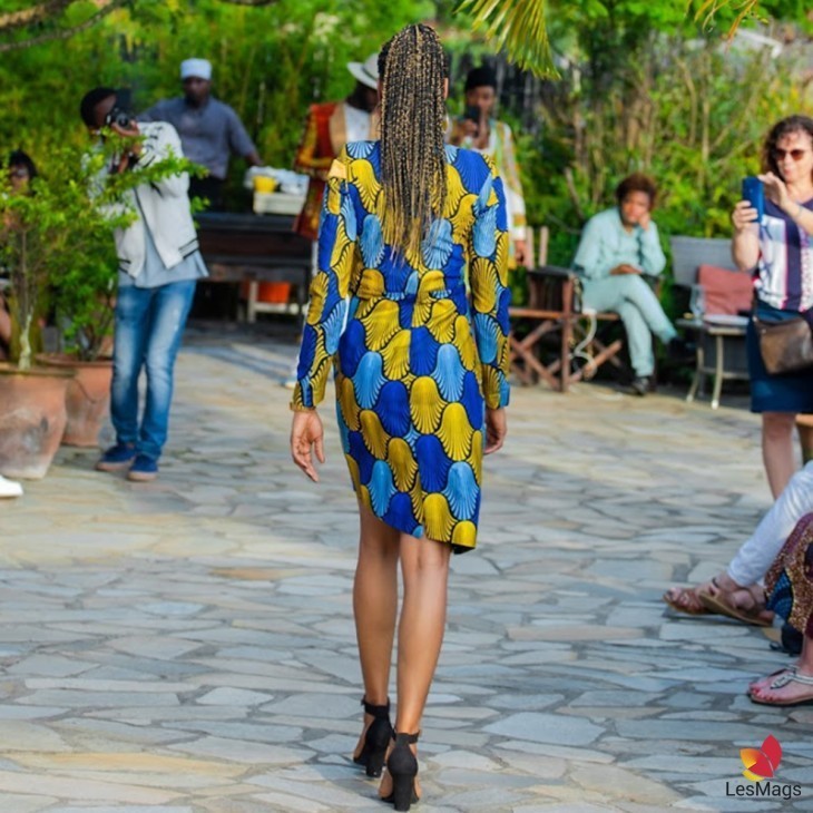 Robe en pagne avec deux cols en satin doré et touche de tulle noire