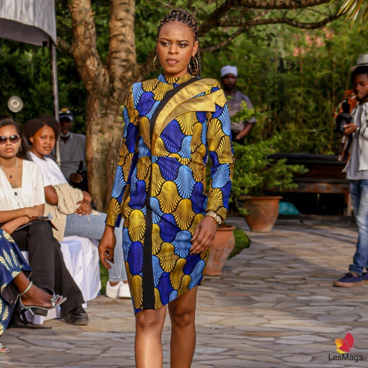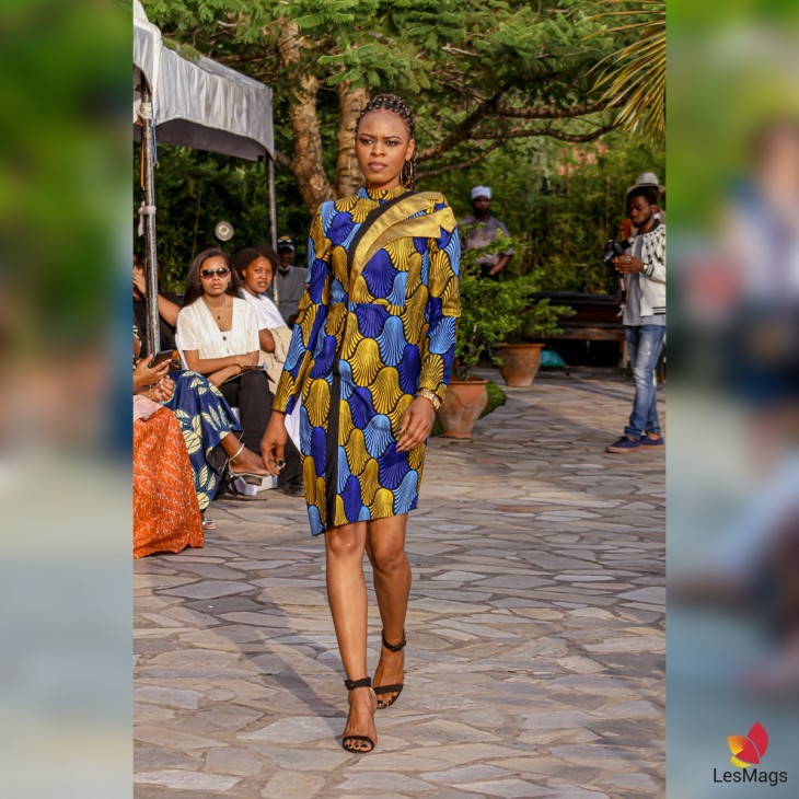 Robe en pagne avec deux cols en satin doré et touche de tulle noire