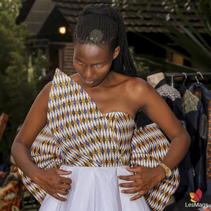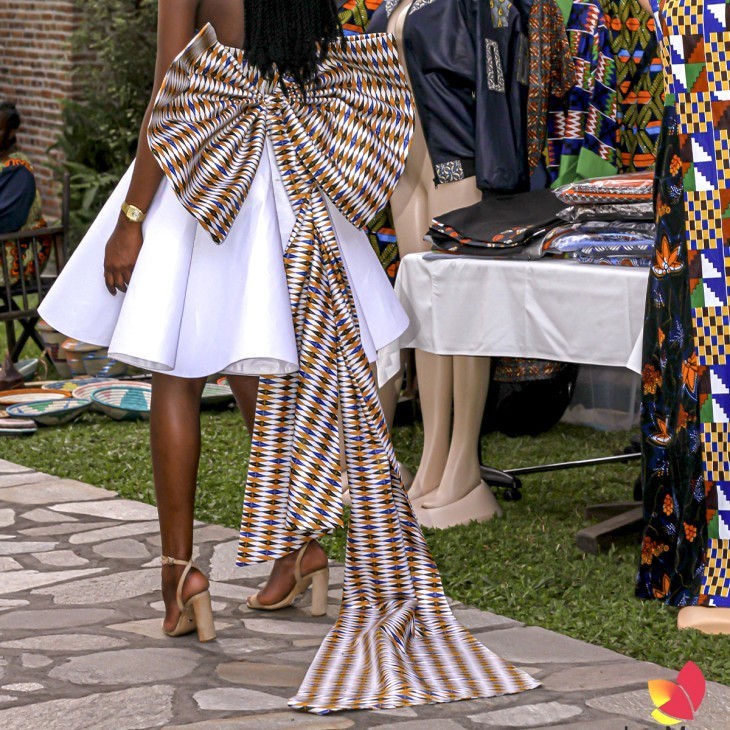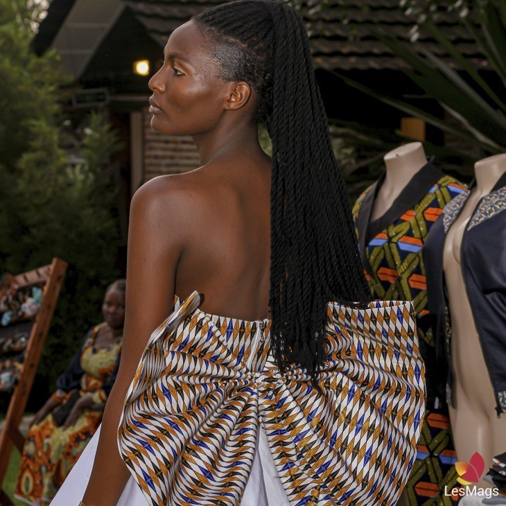 Robe bustier en pagne deux tons et noeud papillon en pagne