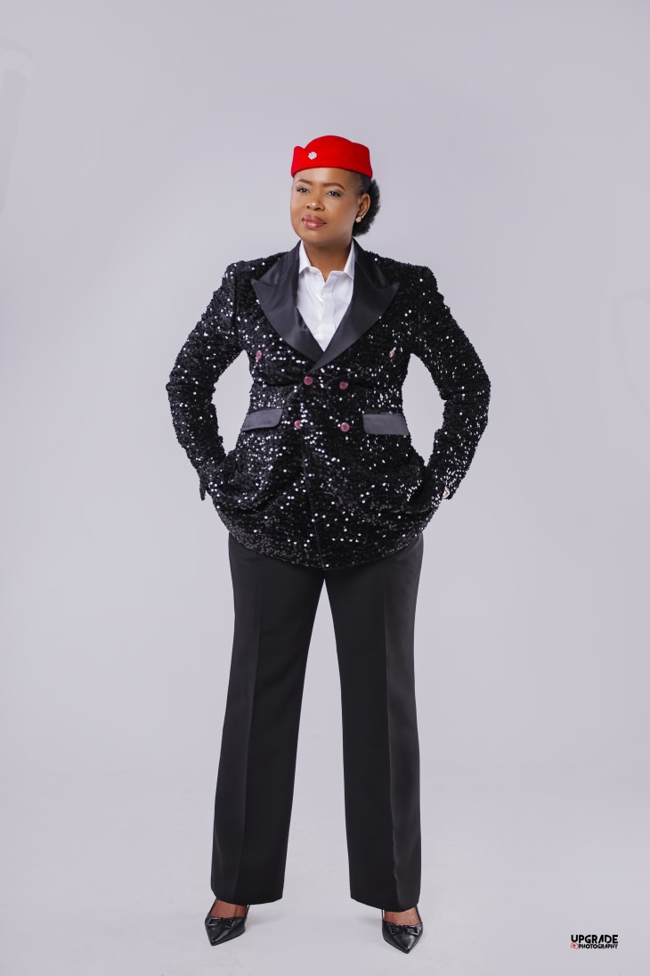Un bel ensemble pantalon noir et veste à sequin pou un look exceptionnel